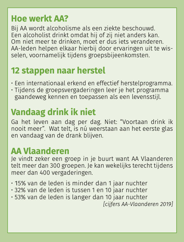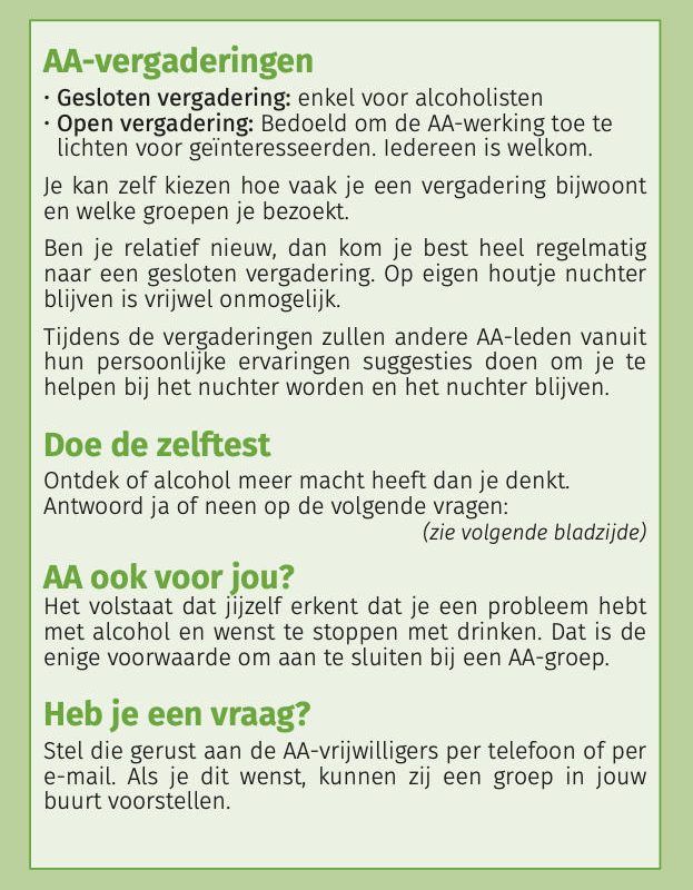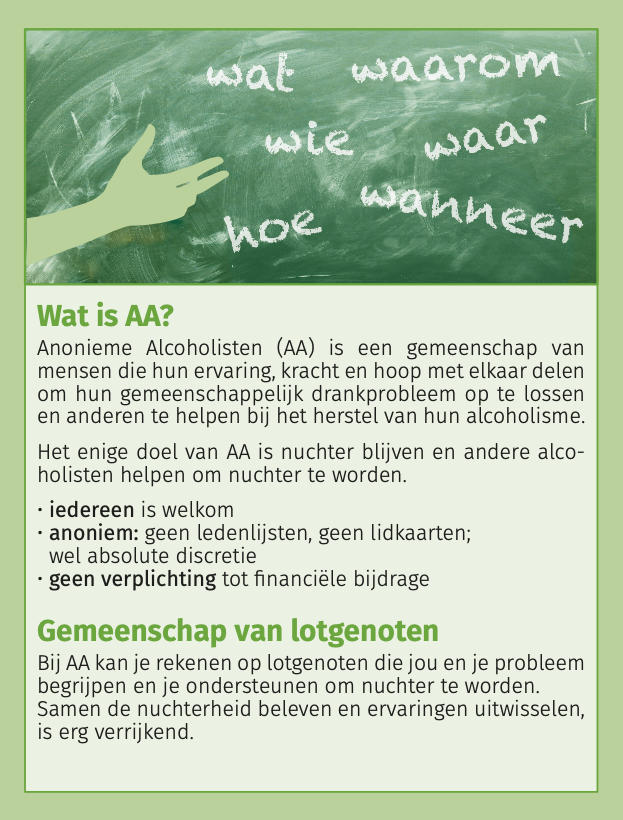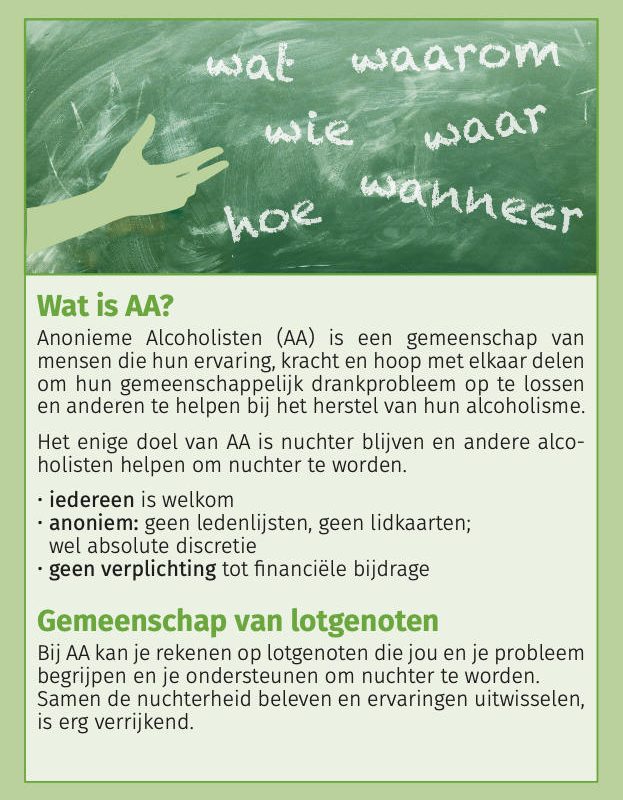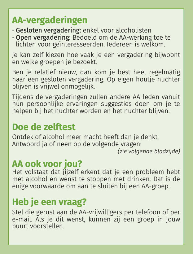 Folder met korte omschrijving van wat AA is, doet en niet doet…