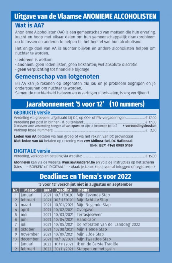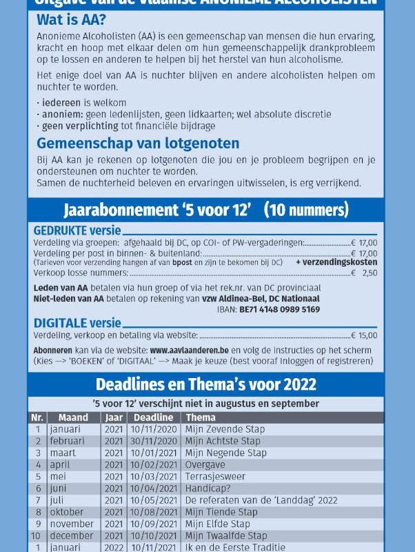 5 voor 12 jaar 2022 (10 nummers per jaar / prijs voor één jaar, verzendingskosten niet inbegrepen.