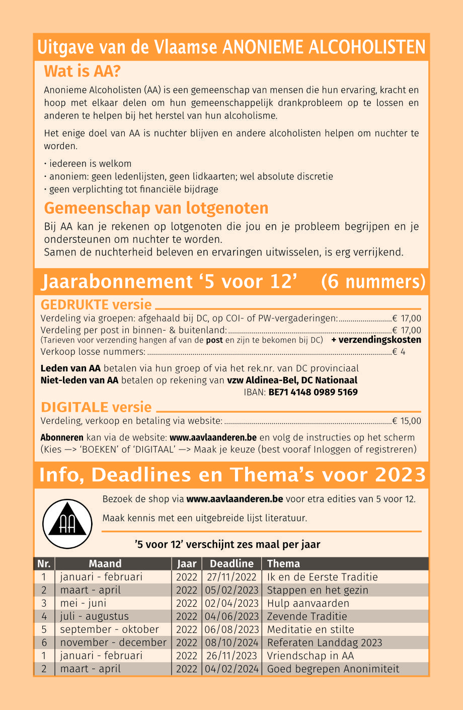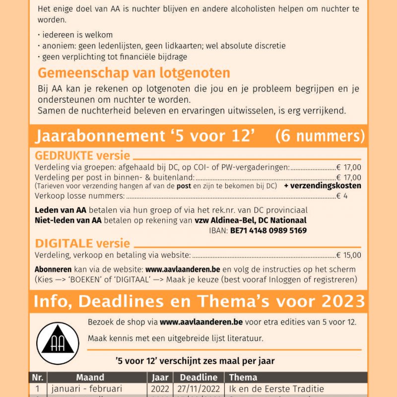 5 voor 12 jaar 2023 (6 nummers per jaar / prijs voor één jaar, verzendingskosten niet inbegrepen.